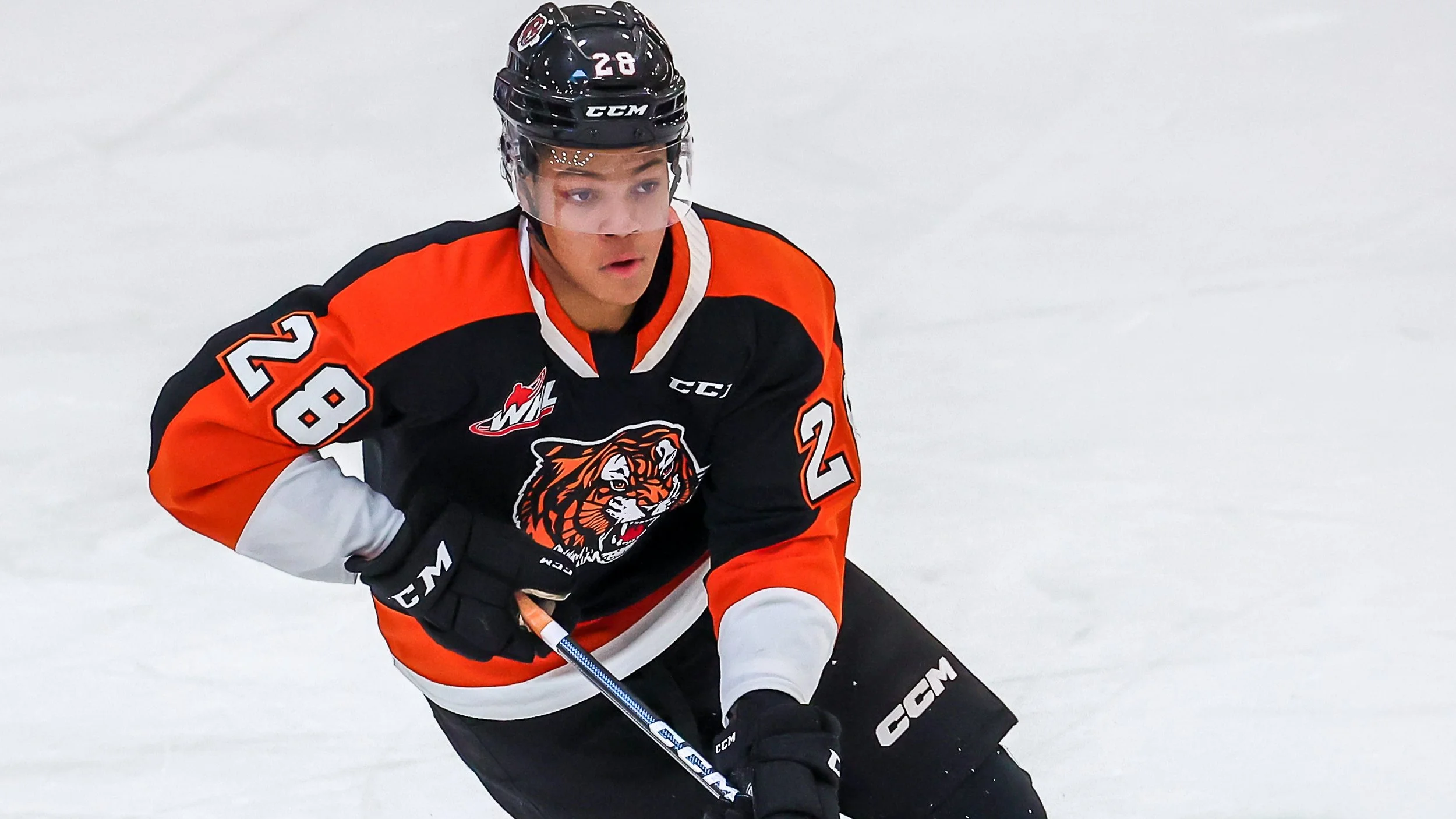 Image Courtesy: TSN | Cayden Lindstrom on the ice for the WHL’s Medicine Hat Tigers